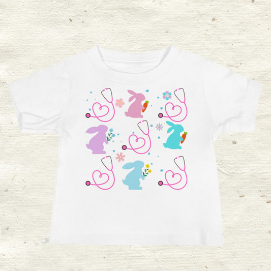 Pastel Easter Bunnies Heart Stethoscopes Baby Jersey Short Sleeve Tee