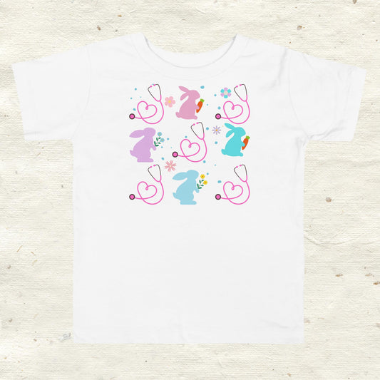 Pastel Easter Bunnies Heart Stethoscopes Toddler Short Sleeve Tee