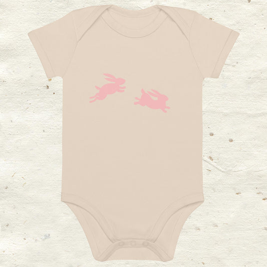 Pink Bunnies Running Organic Cotton Baby Bodysuit