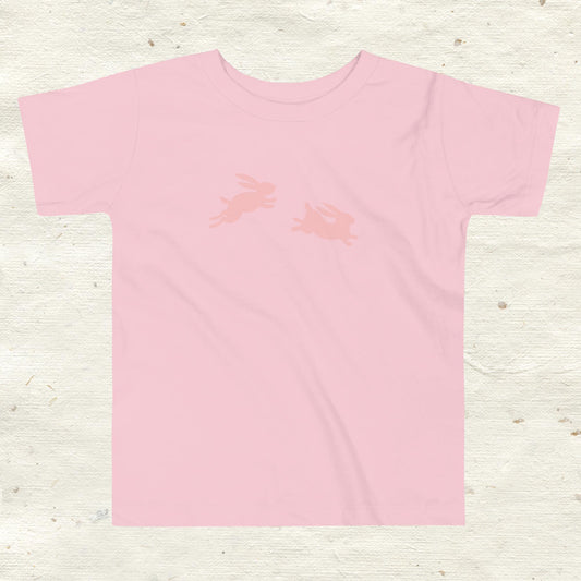 Pink Bunnies Running Toddler Short Sleeve Tee