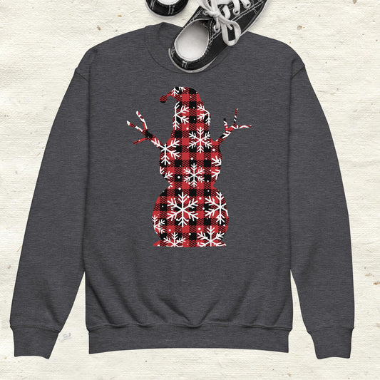 Plaid Snowflake Snowman Youth Crewneck Sweatshirt