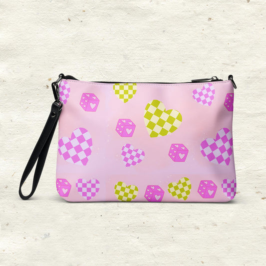 Checkered Hearts Pink Crossbody Bag