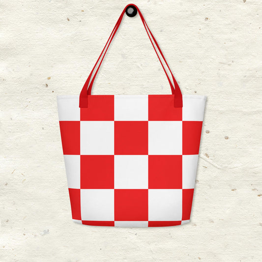 Red and White Checkered All-Over Print Large Tote Bag