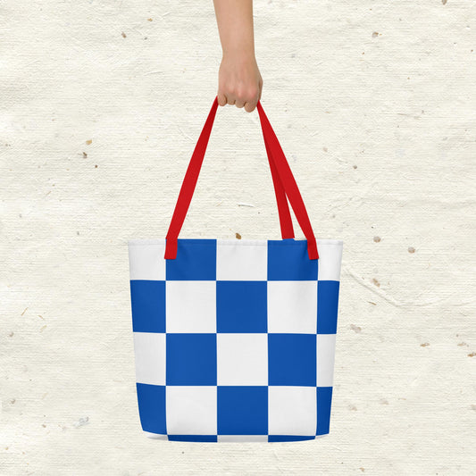 Blue and White Checkered All-Over Print Large Tote Bag