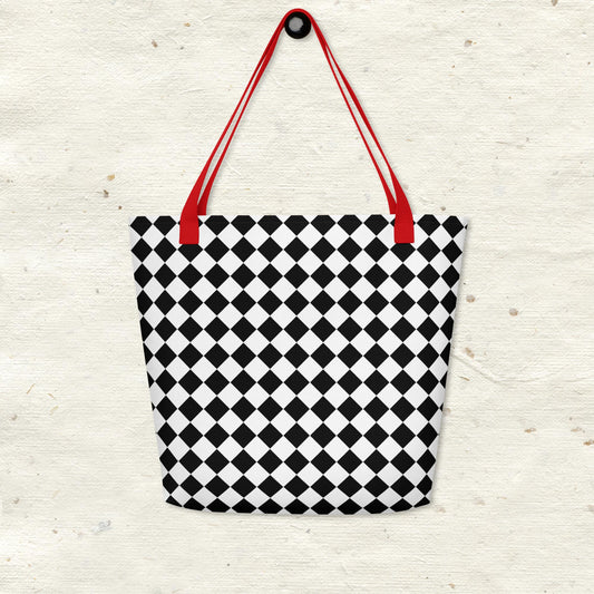 Black and White Diamond Pattern All-Over Print Large Tote Bag