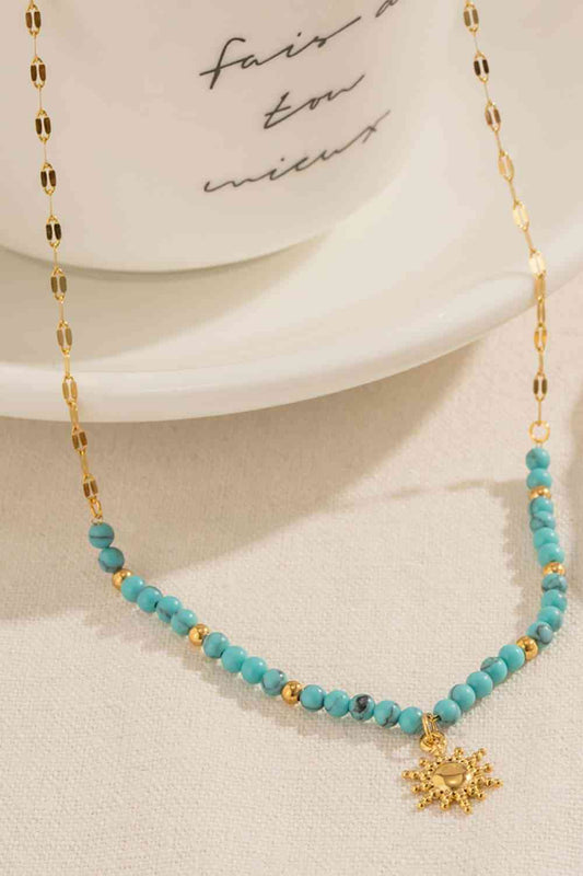 Turquoise Beaded 18K Gold-Plated Sun Shape Pendant Necklace