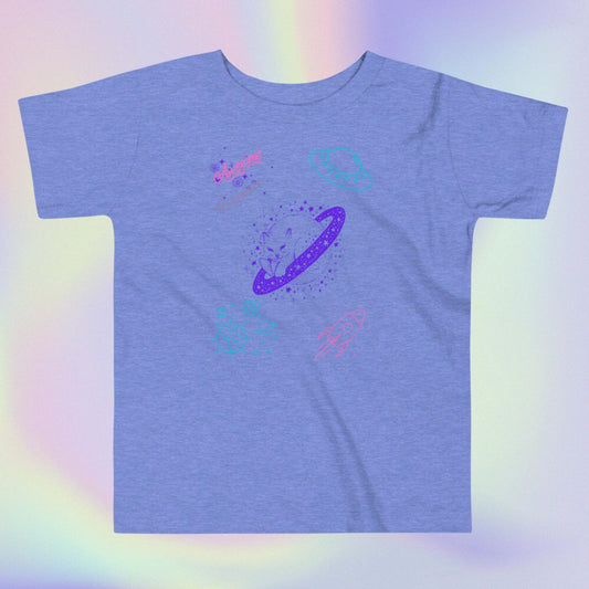 Outer Space Saturn Cat Toddler Short Sleeve Tee
