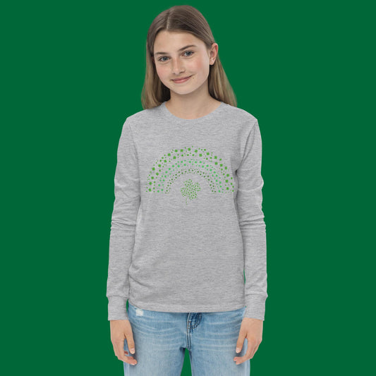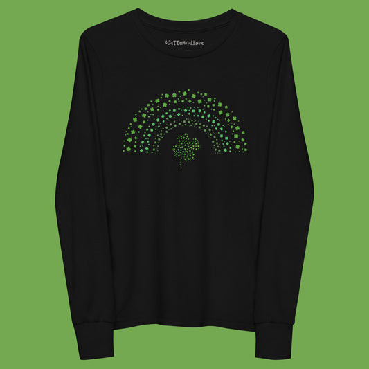 St Patrick’s Day Clover Rainbow Green Youth Long Sleeve Tee
