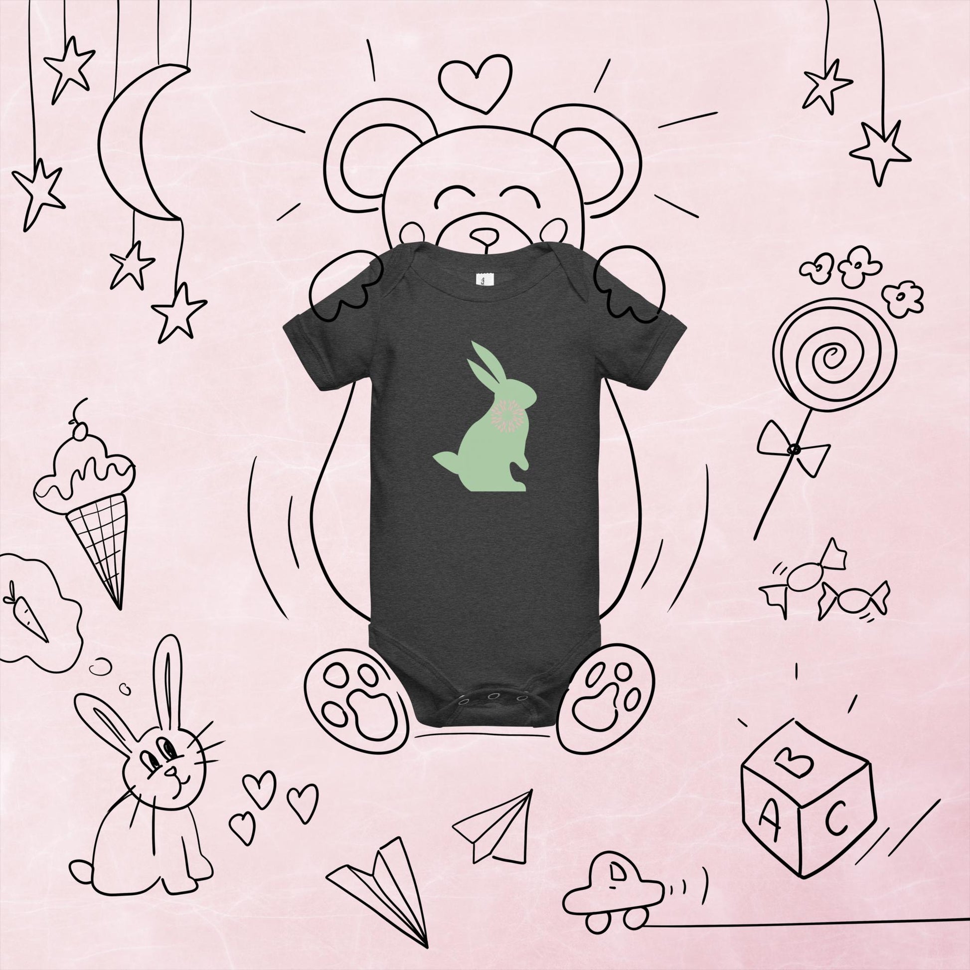 Green Bunny Graphic Baby Short Sleeve One Piece