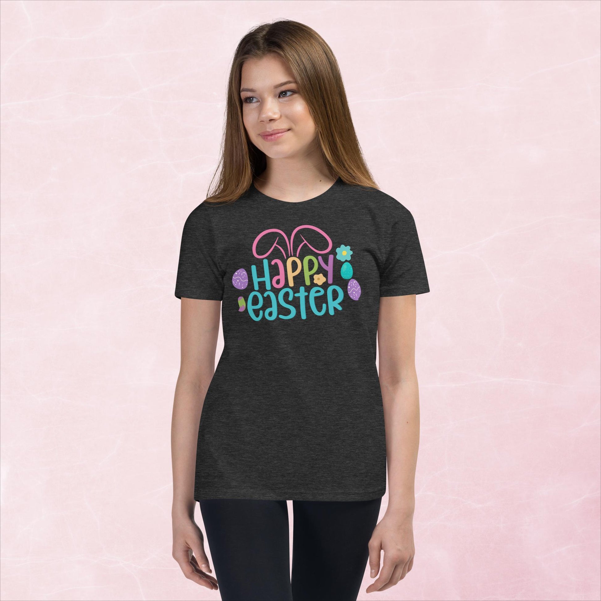 Happy Easter with Bunny Ears Youth Short Sleeve T-Shirt
